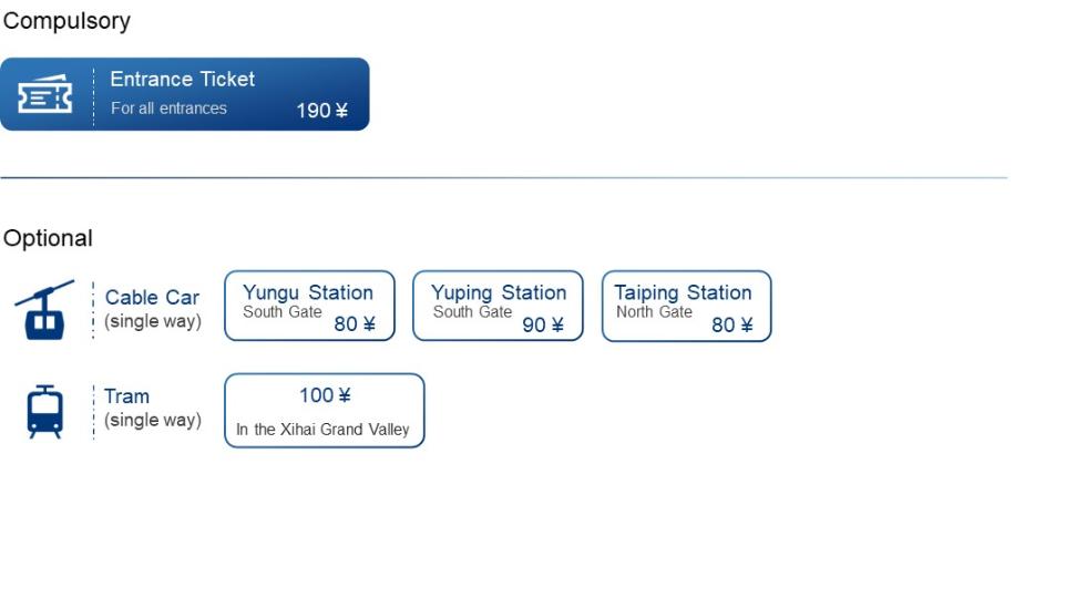 There are three entrances in Huangshan UGGp, the South, the North and the West Gate. Entrance fee and the tram fee is the same for all entrances, but fees for cable cars are different. And there is no cable car in the West Gate. Only entrance ticket is compulsory for all.