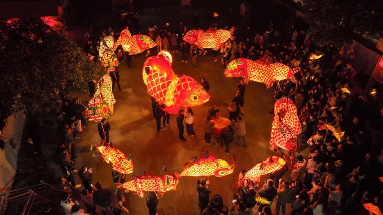 On the evening of December 7th, a traditional fish lantern parade was held in Zhanqi Village, Yixian County, to celebrate China's Spring Festival being inscribed on the UNESCO Representative List of the Intangible Cultural Heritage of Humanity.