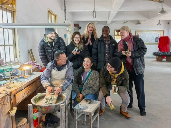 Visiting the Lao Hu Kai Wen Ink Factory, the students learned about the production process of Huizhou ink, one of the four treasures of the study. Surrounded by the subtle fragrance of ink, they felt ancient ink artists' passion and poetic essence.