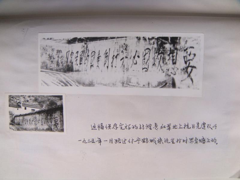 1935年1月,紅軍北上抗日先遣隊從江西往休寧縣蘭渡方向行進時,經(jīng)過休寧縣鶴城鄉(xiāng)樟源里時,在該村的一個叫果嶺的山頭上打了一個小仗后,在村民家中住了一晚,他們利用休息的間隙在該村村民的房屋墻壁上寫下了這幅標(biāo)語。內(nèi)容為:“要想救國必先打倒賣國的國民黨”。