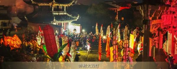 歙北許村人的“舞大刀燈”傳說是為了追懷他們的祖先—唐代的忠義公許遠而創(chuàng)立的。大刀燈是以長條竹等為原材料制作大刀,進行傳統(tǒng)民俗舞蹈,在名城歙縣為之獨特,全國也很罕見。大刀制作屬傳統(tǒng)的手工工藝,刀外形畫有人物、花草等圖案,點綴畫面。刀鼻處寫有“風(fēng)調(diào)雨順,國泰民安”八個大字。大刀舞“手眼身法步”缺一不可,舞刀人必須要齊心協(xié)力,通力合作。