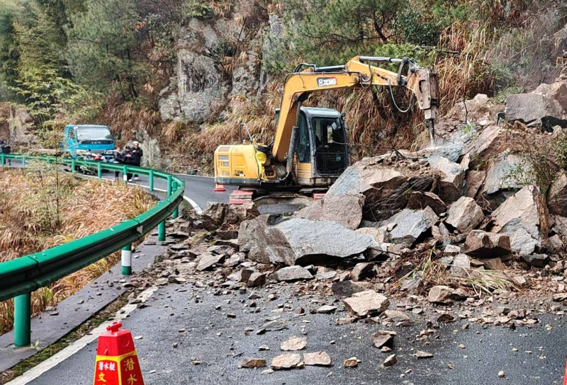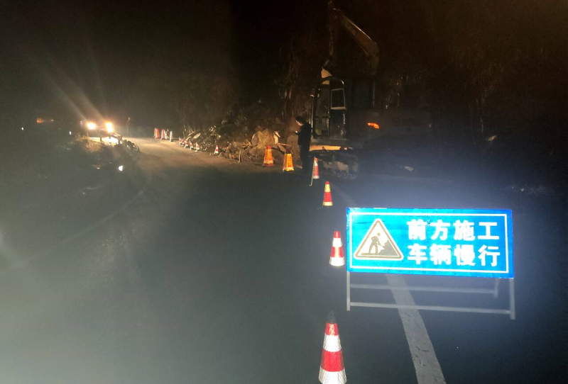 3月13日下午4時(shí)左右,S103省道休寧六灣段附近突發(fā)塌方,坍塌的土石占據(jù)了全幅路面,車輛無(wú)法通行。該線承養(yǎng)人員接到險(xiǎn)情報(bào)告后,調(diào)集機(jī)械前往搶險(xiǎn)。由于坍塌的石塊比較大,清理難度大,給搶險(xiǎn)工作帶來一定難度。搶險(xiǎn)人員先用破拆機(jī)械對(duì)大石塊進(jìn)行破碎,再用挖掘機(jī)由外側(cè)向內(nèi)側(cè)依次清理。通過搶險(xiǎn)人員3個(gè)多小時(shí)的努力,到晚上近8點(diǎn)鐘清出半幅通行路面,交通恢復(fù)通行。因夜間搶險(xiǎn)可視性差,不安全因素多,為保障作業(yè)人員機(jī)械安全和行人行車通行,搶險(xiǎn)人員對(duì)塌方路段做好安全防范措施后,次日白天接續(xù)對(duì)剩余塌方徹底清除到位。