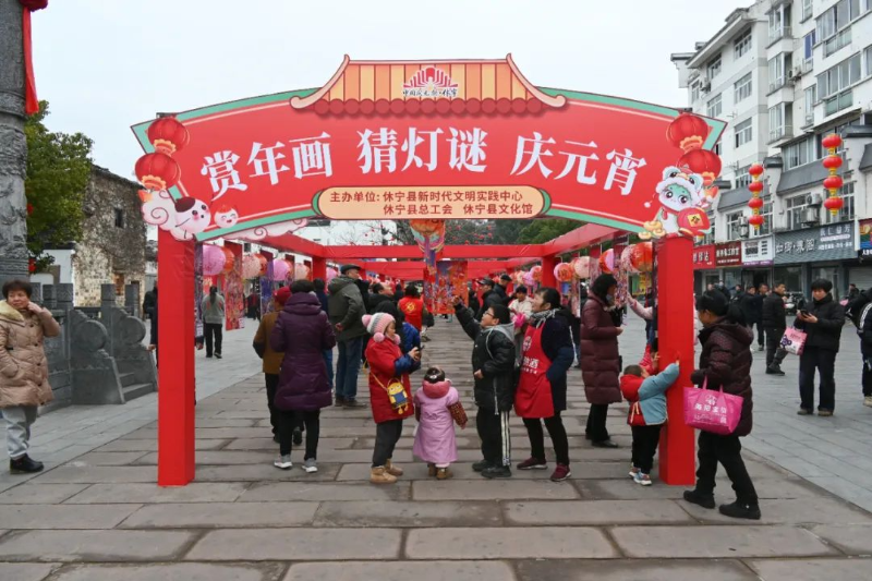 2月11日上午,休寧縣在狀元文化廣場(chǎng)舉辦“賞年畫 猜燈謎 慶元宵”主題活動(dòng)?!び鄷試[ 姚靖雯·
