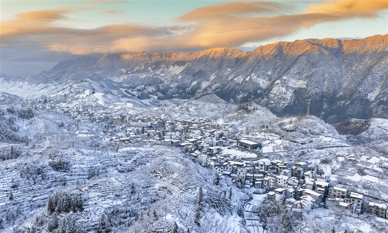 2月17日,受寒潮影響,歙縣海拔1000米以上的金川鄉(xiāng)被一場春雪覆蓋。一時間,村落、群山銀裝素裹,盡顯詩意之美。
