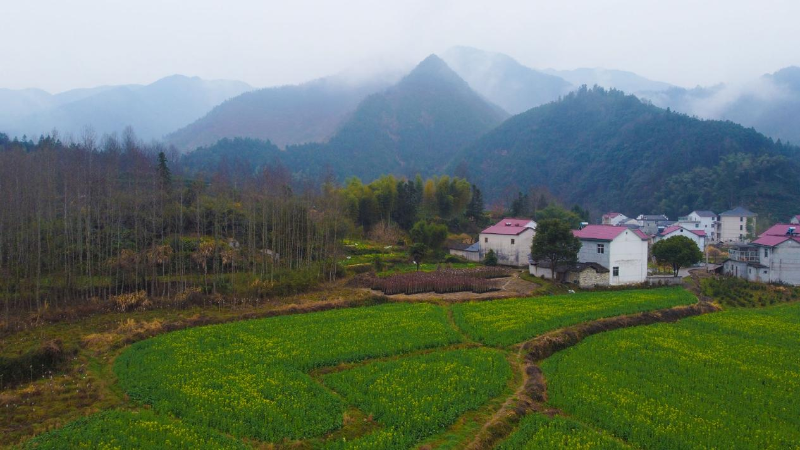 3月9日,春雨停歇之后,祁門(mén)縣安凌鎮(zhèn)城安村,成片青黃的油菜花田與周邊錯(cuò)落有致的民居、云霧繚繞的綿延山巒相互映襯,構(gòu)成一幅美麗的春日水墨畫(huà)卷。