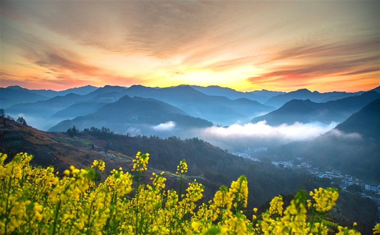 春風(fēng)輕吻黃山大地,一場(chǎng)盛大的花事正絢爛上演。