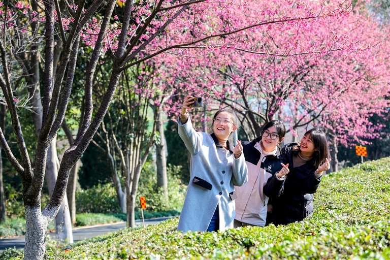 徽州區(qū)謝裕大茶博園內(nèi)櫻花綻放 樊成柱/攝