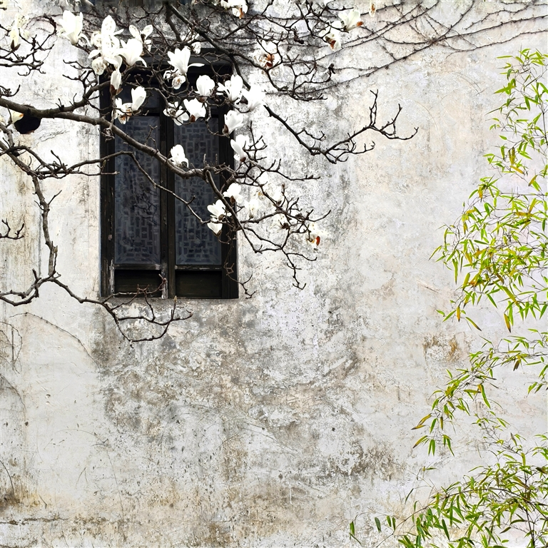 粉墻相伴,白玉蘭靜綻芳華 江永言/攝