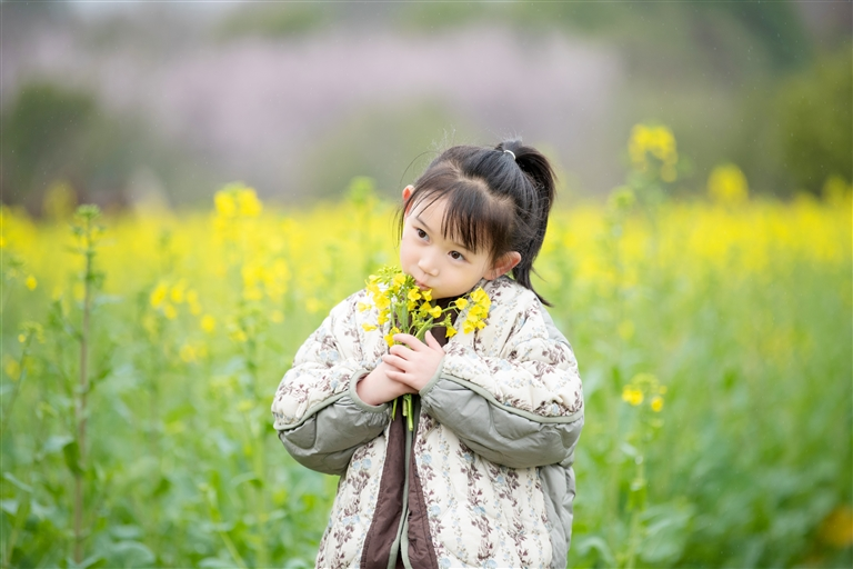 在油菜花田細(xì)嗅一抹清甜花香 吳兢忻/攝