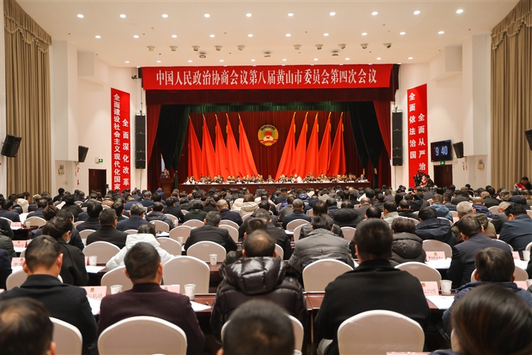 凝聚共識謀良策,奮發(fā)實干譜新篇。1月12日上午,市委市政府會堂燈光璀璨,氣氛莊重熱烈。主席臺正中懸掛著象征各族人民大團結(jié)的政協(xié)會徽,在十面紅旗的映襯下熠熠生輝。中國人民政治協(xié)商會議第八屆黃山市委員會第四次會議在這里隆重開幕。