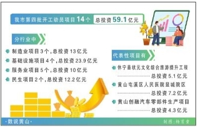 代表性項目有:休寧縣狀元文化綜合旅游提升工程,總投資5.1億元;黃山屯溪區(qū)人民醫(yī)院昱城院區(qū),總投資7.2億元;黃山創(chuàng)融汽車零部件生產(chǎn)項目,總投資4.3億元。